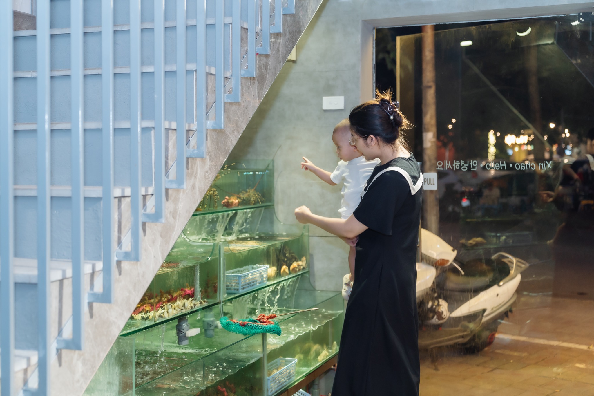 Hải sản khá đa dạng, bơi tung tăng khắp bể nhìn mê lắm.